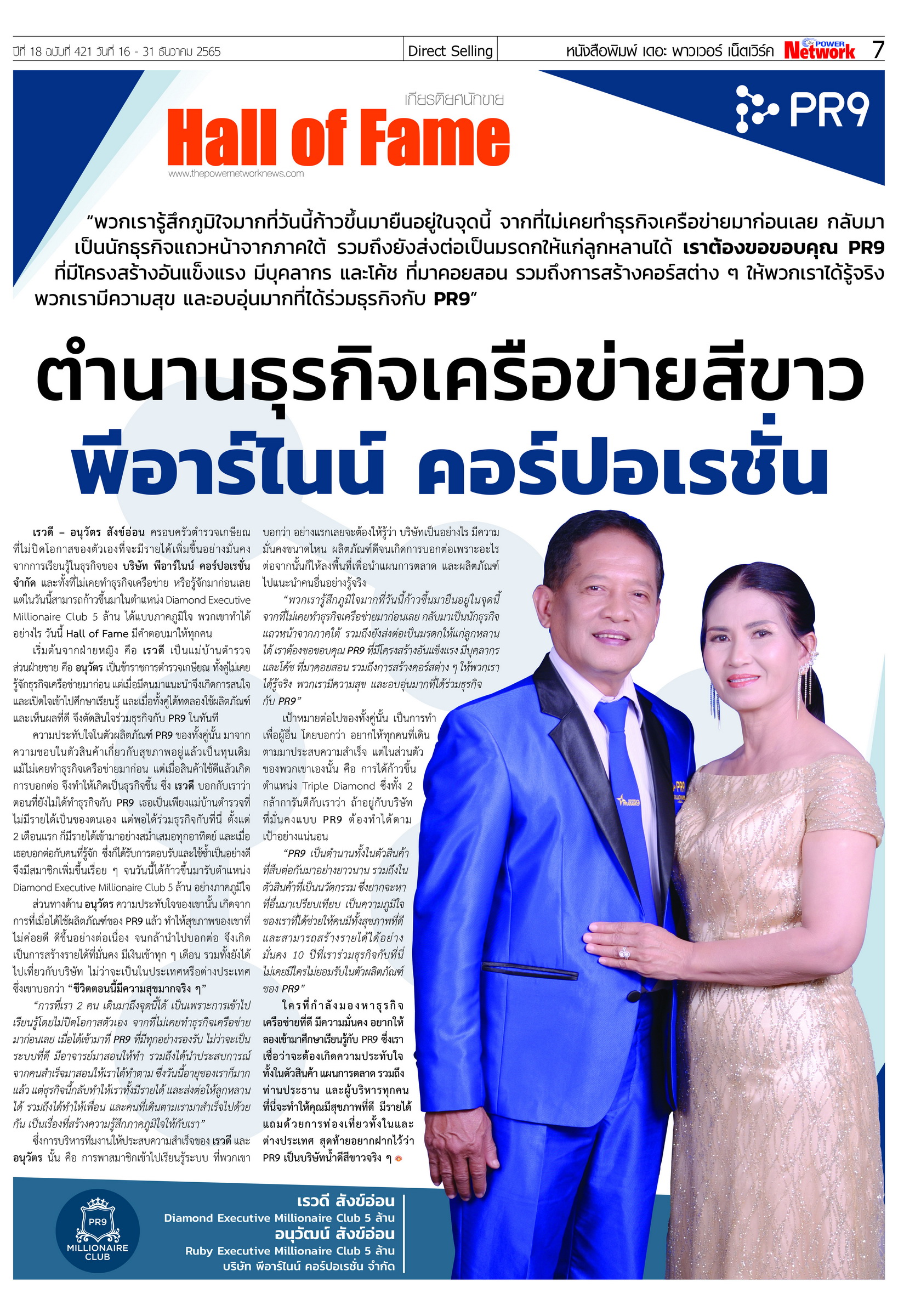 ตำนานธุรกิจเครือข่ายสีขาว พีอาร์ไนน์ คอร์ปอเรชั่น