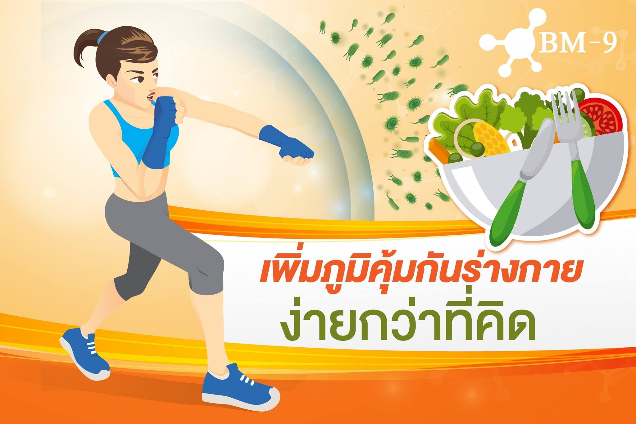 เพิ่มภูมิคุ้มกันร่างกาย ง่ายกว่าที่คิด ภูมิคุ้มกันร่างกาย คือการป้องกันไม่ให้ร่างกายเจ็บป่วยง่าย ดังนั้นก่อนที่จะสาย เราควรรีบดูแลตัวเอง ป้องกันร่างกายให้ห่างไกลโรค ด้วยการปรับเปลี่ยนพฤติกรรมการใช้ชีวิต ดังนี้ 1.ทานอาหาร นอกเหนือจากการทานอาหารให้ครบ 5 หมู่ ควรเสริมด้วยอาหารที่ช่วยสร้างเสริมระบบภูมิคุ้มกัน ซึ่งโดยมากจะอยู่ในผักผลไม้ที่มีเบต้าแคโรทีน วิตามินซี วิตามินอี วิตามินบี ที่อยู่ในผักใบเขียวจัดหรือสีเหลืองส้ม เห็ดต่างๆ และแร่ธาตุซิลีเนียม หรือสังกะสี ที่พบในเนื้อสัตว์ อาหารทะเล นม หรือถั่ว รวมถึงโปรไบโอติก จุลินทรีย์ที่ดีที่สุดของร่างกาย ที่พบในโยเกิร์ต ชีส หรือในอาหารเสริมต่างๆ เป็นต้น 2. ออกกำลังกาย เพราะช่วยกระตุ้นให้ระบบการไหลเวียนเลือดดีขึ้น แล้วทำให้เม็ดเลือดขาวในเนื้อเยื่อต่าง ๆ แข็งแรง เพื่อจัดการกับเชื้อโรคได้ง่าย อีกทั้งร่างกายจะหลั่งสารเอนดอร์ฟินออกมา หลังการออกกำลังกายเพื่อช่วยทำให้เรารู้สึกผ่อนคลาย ลดความเครียด และความวิตกกังวล ซึ่งเป็นปัจจัยหนึ่งที่ทำให้เกิดโรคภัยได้ โดยเราควรออกกำลังกายให้ได้อย่างน้อย 30 นาที 3-4 วันต่อสัปดาห์ 3.พักผ่อนให้เพียงพอ ควรนอนหลับอย่างน้อยวันละ 6 – 8 ชั่วโมง เพราะการเข้านอนเร็วจะช่วยให้ต่อมหมวกไตหลั่งฮอร์โมน DHEA (สารตั้งต้นของฮอร์โมนเพศหญิงและชายที่ทำหน้าที่ช่วยต้านความเครียดและกระตุ้นภูมิต้านทาน) ออกมาได้อย่างมีประสิทธิภาพมากขึ้น 4.ดูแลอารมณ์และจิตใจ ฝึกผ่อนคลายจิตใจตนเองได้ ด้วยการกำหนดลมหายใจหรือนั่งสมาธิ เป็นต้น มีงานวิจัยพบว่า การนั่งสมาธิสามารถช่วยเพิ่มระดับฮอร์โมน DHEA ซึ่งนมีหน้าที่สำคัญช่วยกระตุ้นภูมิคุ้มกันและมีบทบาทในการต้านโรคมะเร็งอีกด้วย ทั้งหมดนี้ควรปฏิบัติควบคู่กันเพื่อให้ได้ผลลัพธ์ทางสุขภาพที่ดีขึ้น แต่สำหรับผู้ที่ไม่มั่นใจว่าจะปรับตัวได้เต็มที่ การทานผลิตภัณฑ์อาหารเสริมภูมิคุ้มกัน เช่น #BM9 อาหารเสริมโปรไบโอติก จุลินทรีย์เพื่อชีวิต ดูแลสมดุลร่างกาย ก็ถือเป็นทางเลือกที่น่าสนใจเลยทีเดียว admink2019-06-17T08:19:40+00:00 แชร์เรื่องนี้ FacebookTwitterEmail