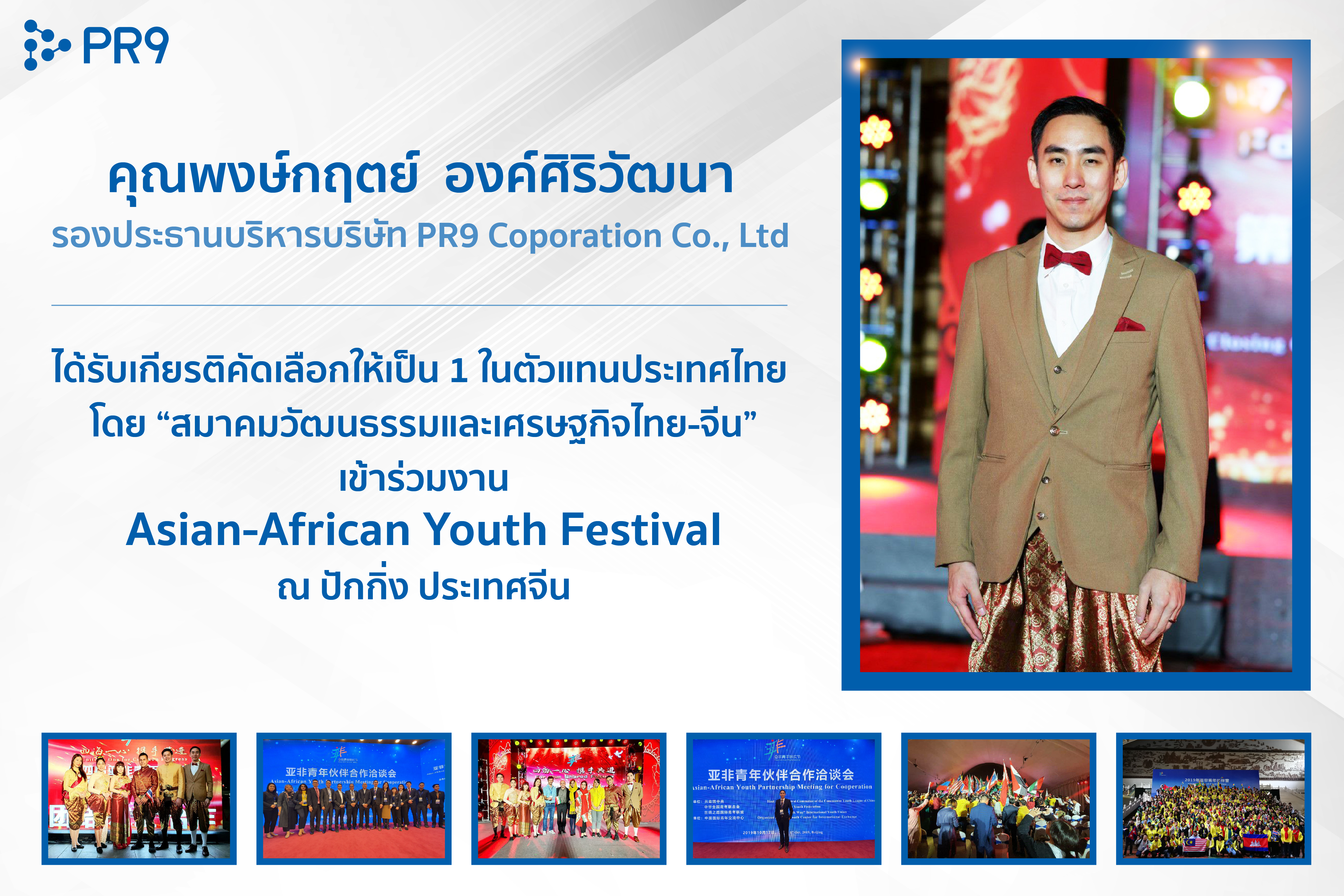คุณพงษ์กฤตย์ องค์ศิริวัฒนา รองประธานบริหาร บริษัท พีอาร์ไนน์ คอร์ปอเรชั่น จำกัด ได้รับเกียรติคัดเลือกให้เป็น 1 ในตัวแทนประเทศไทย โดย “สมาคมวัฒนธรรมและเศรษฐกิจไทย-จีน
